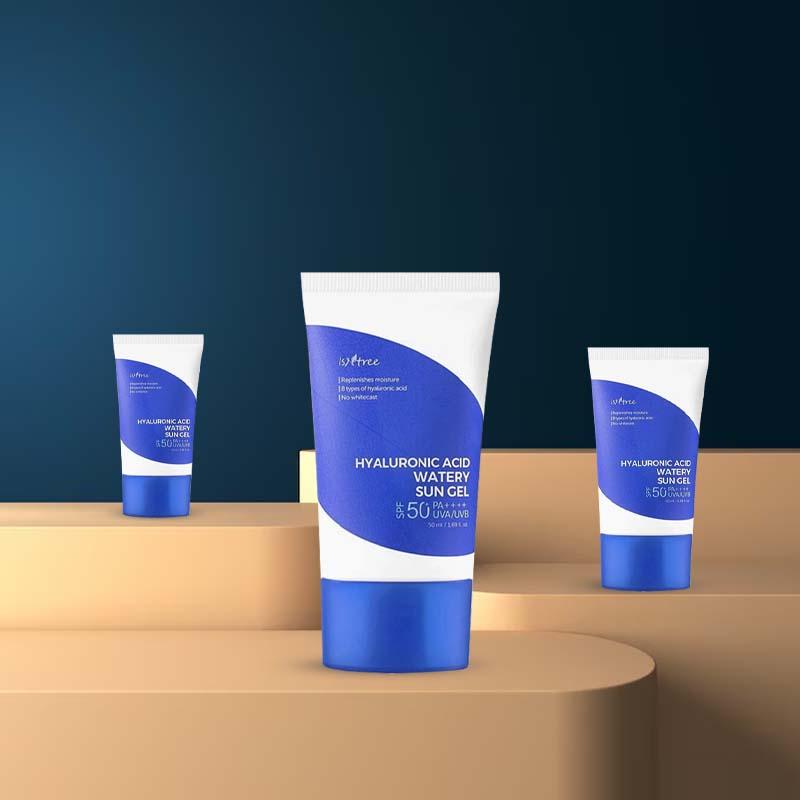 This Isntree Hyaluronic Acid Watery Sun Gel is an eight layer Hyaluronic Acid Moisture Cooling Sun Gel which leaves skin soft and moist with powerful UV defence.